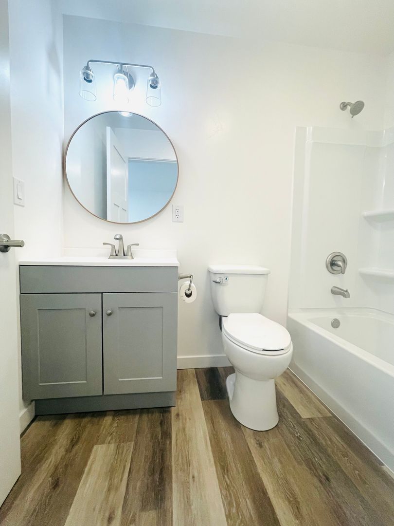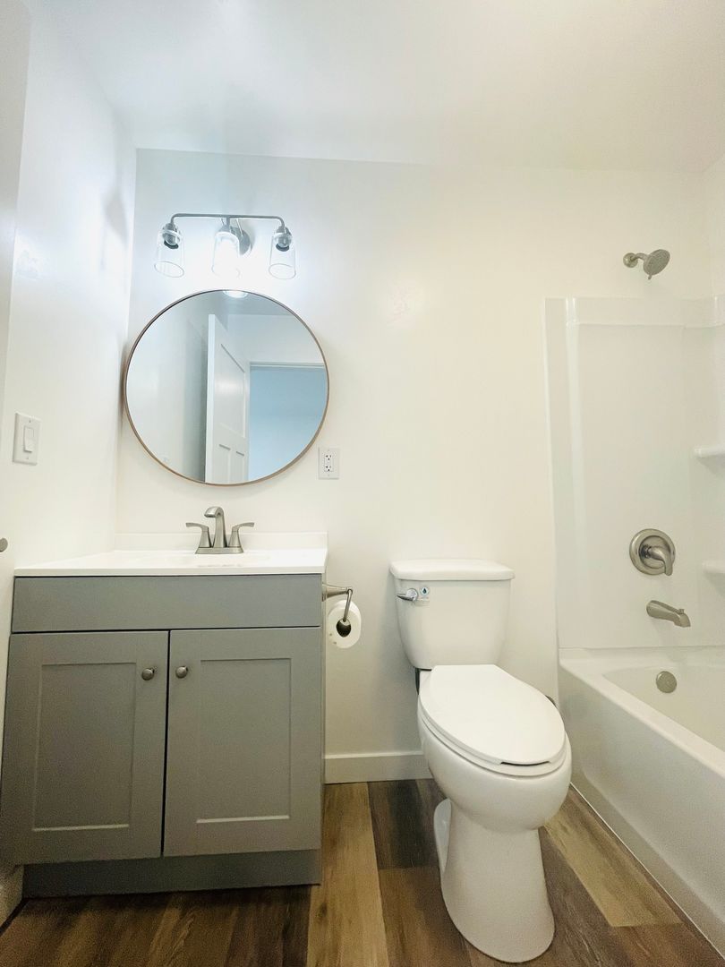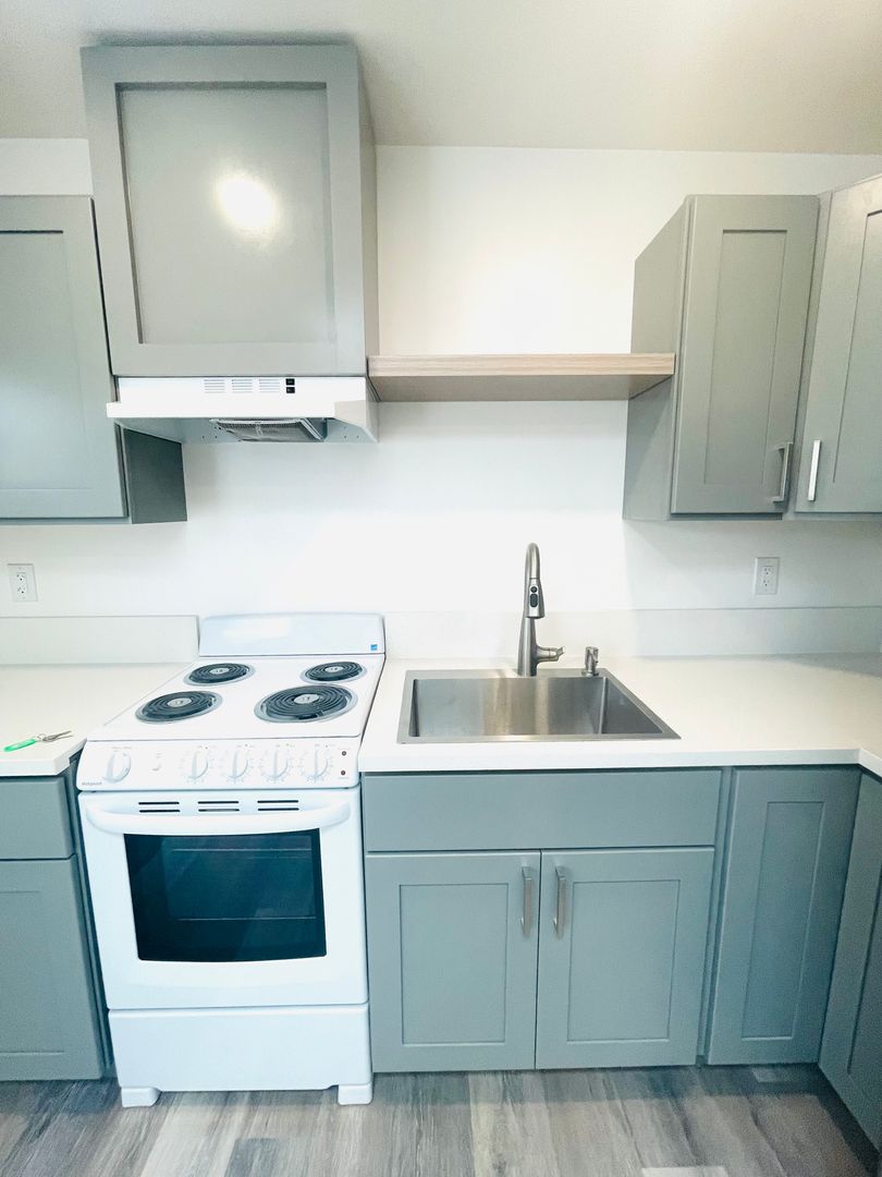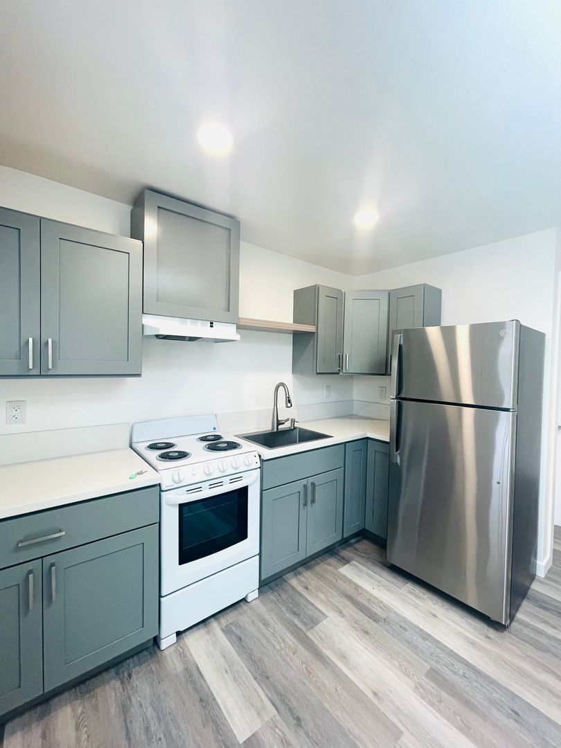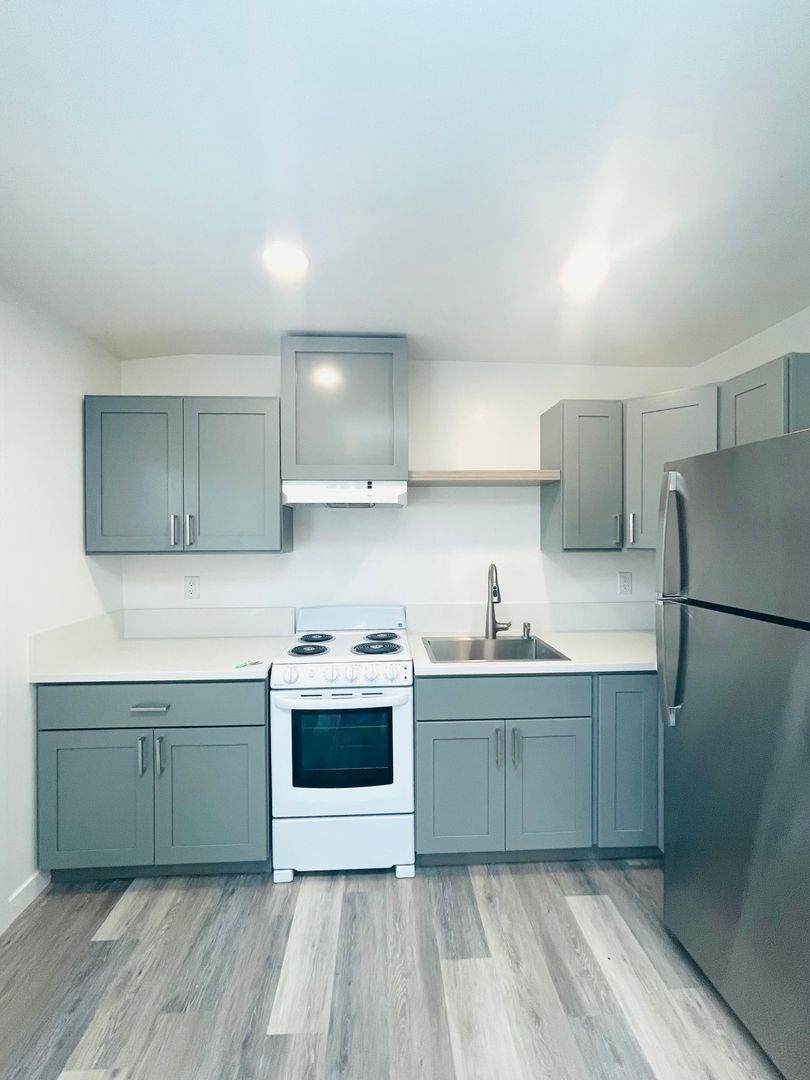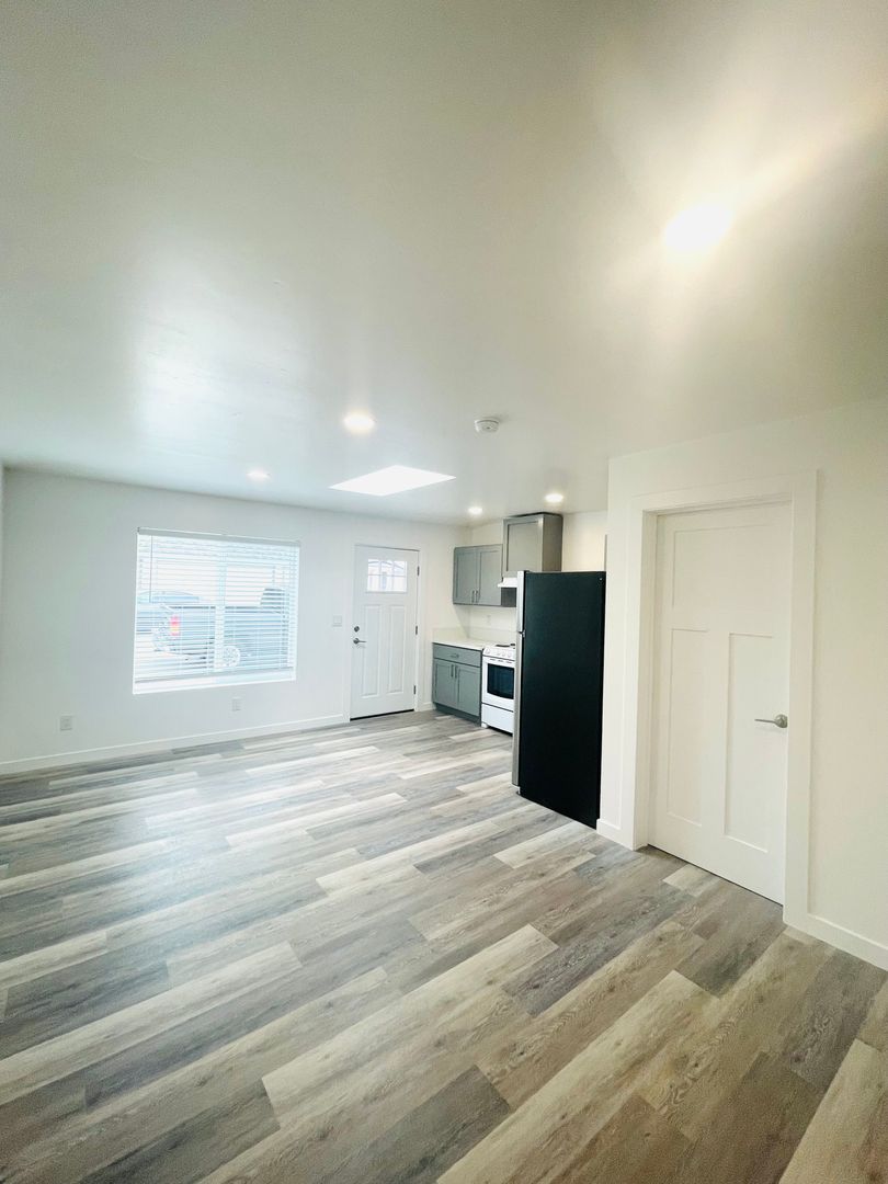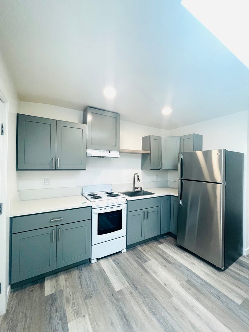 Discover a well-appointed studio apartment in Ventura, CA, featuring an efficient layout with a full bathroom and modern finishes. The space includes vinyl flooring, quartz countertops, a stainless sink and stainless steel appliances with an electric stove. Natural light enters through a skylight and energy-efficient windows, complemented by recessed lighting and window coverings. Comfort is supported by air conditioning and a heater. Additional practical features include a storage area, a security gate, and street parking. This apartment offers a contemporary, functional setting in a convenient Ventura location.