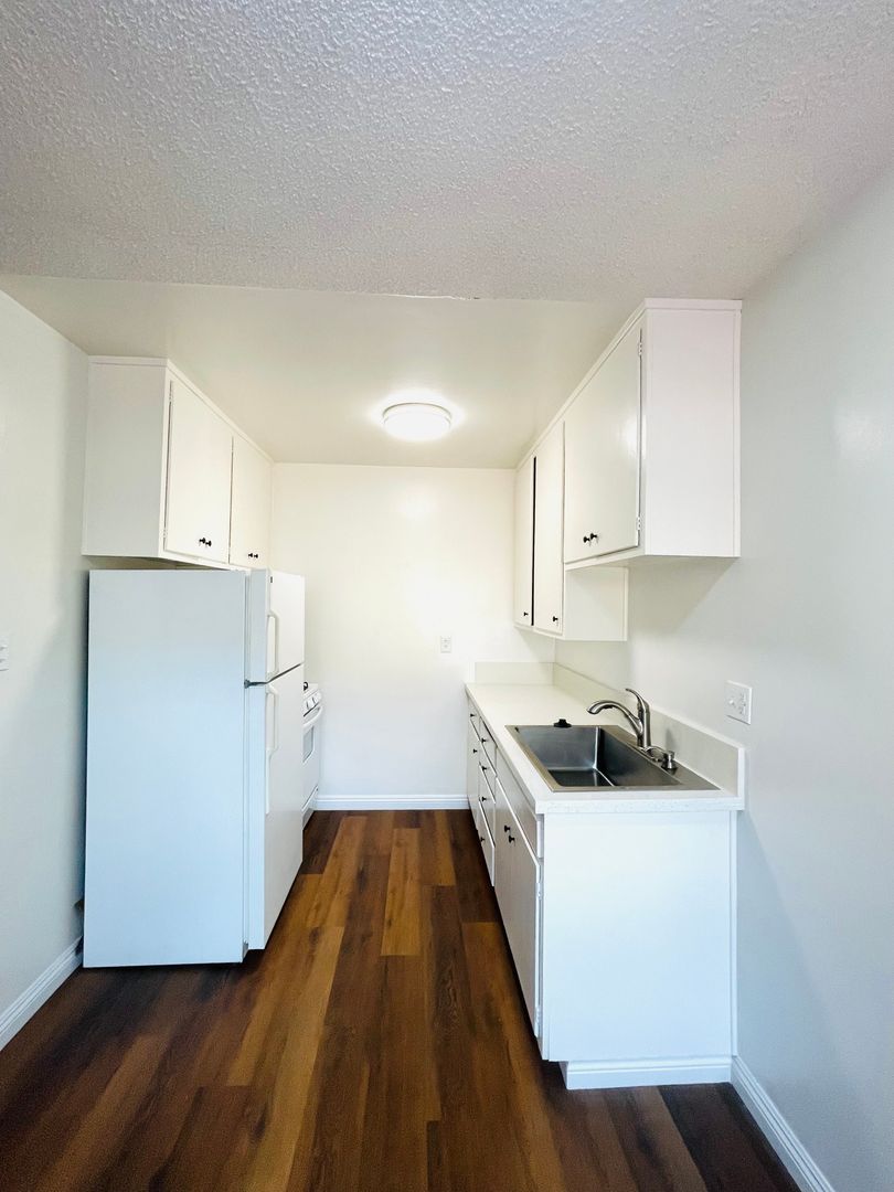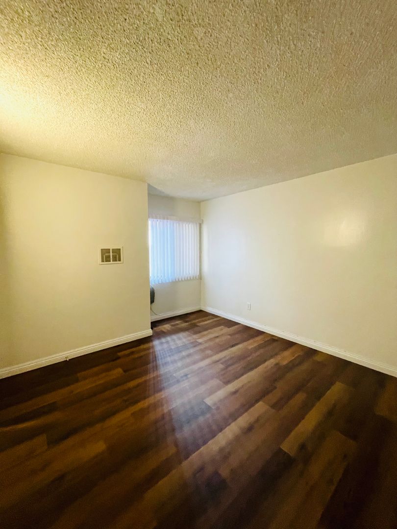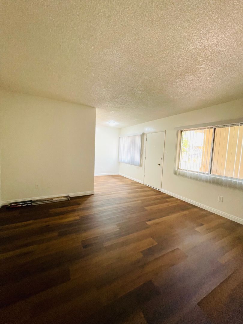 Welcome to your new home in Oxnard, CA! This ready-for-immediate-move-in apartment offers a spacious 1-bedroom layout with a generous walk-in closet and a full bathroom. The kitchen is equipped with a refrigerator and a gas stove, complemented by stunning Quartz countertops. The apartment features durable vinyl flooring throughout, providing a modern and sleek look. The unit is located downstairs and is a corner unit, offering easy access and additional privacy within the gated community. The apartment also comes with window coverings for your convenience. A shared garage is available for your vehicle, and a common laundry facility is provided for all residents. The rent includes water, trash, and gardening services, making your stay more comfortable and hassle-free. The bathroom features a shower tub, perfect for a relaxing soak after a long day. This apartment is a perfect blend of comfort and convenience, waiting for you to make it your own.