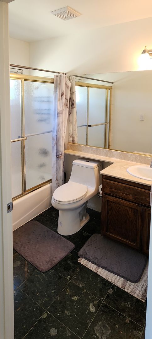 All bedrooms are located upstairs, bedrooms are equipped with mirror closet doors, and the main suite features two walk-in closet, a stand-up shower, and a shower tub along with double sinks for convenience. The home also offers a convenient downstairs bathroom. The laundry won't be a chore with washer/dryer available located in the garage with plenty of extra storage. The exterior of the home is just as impressive with a fenced-in yard, a covered patio, and a 2-car garage with an opener. This home is a perfect blend of comfort and modern amenities, ready to be enjoyed.